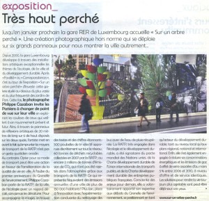 02/10/2008 Jusqu'en janvier prochain la gare RER de Luxembourg accueille « Sur un arbre perché ». Une création photographique hors norme et engagée qui se déploie sur six grands panneaux pour nous montrer la ville autrement...
